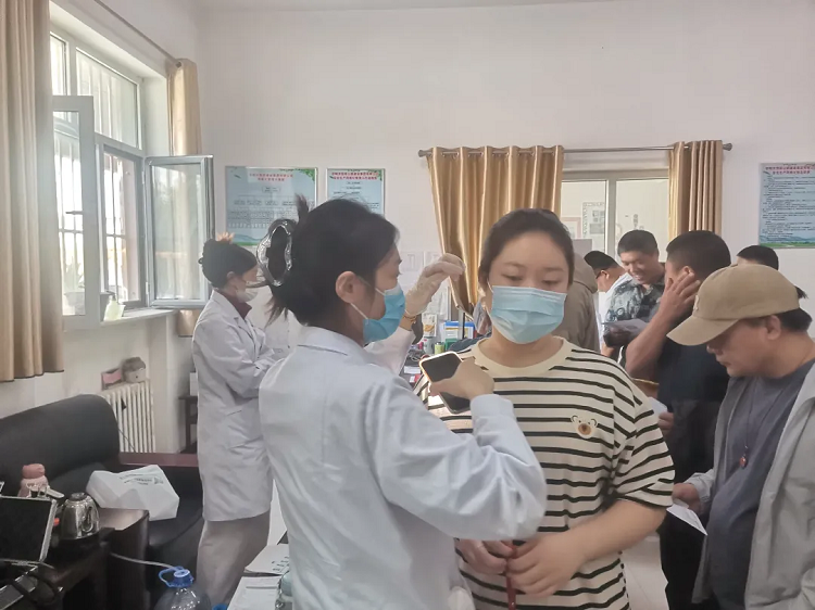 排隊、登記、量血壓……體檢各環(huán)節(jié)有條不紊地推進。